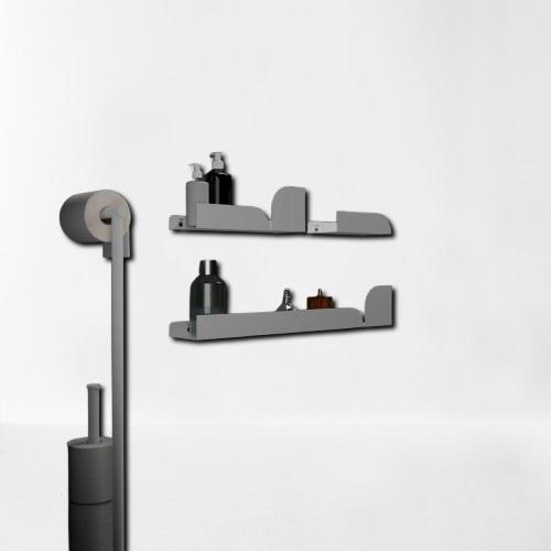 Set of 3 sleek, stainless steel shelves designed for bathrooms. Durable and moisture-resistant for a perfect fit. Price includes all 3 shelves.