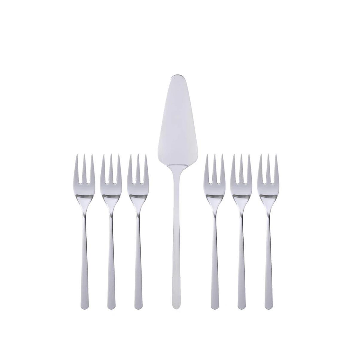 Description: Abert Cake Set, 7 Pieces. Includes 6 Forks and 1 Cake Server.