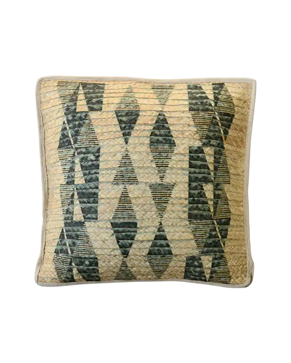 This delightful one-of-a-kind Khoos/wicker cushion with its artistic texture will complement any space with your eye-catching original designs. This unique natural handwoven Khoos cushion, made by skilled craftsmen, adds both personality and extra coziness to chair or sofa. Design: geometric pattern. Material: Printed handwoven khoos/wicker, with foam filling. Dimensions: 50×50 cm Each khoos cushion is individually hand formed. Therefore, each is individually unique and has slight variations. Khoos is traditionally made of palm leaves; it is light yet sturdy. Origin: The ancient Egyptians, ever resourceful, were creating khoos furniture by around 3000 BC, using the bladed grasses so ubiquitous on the banks of the Nile and so strong when dried. These were used to produce some of the most beautiful intertwined furniture items the world has ever known.