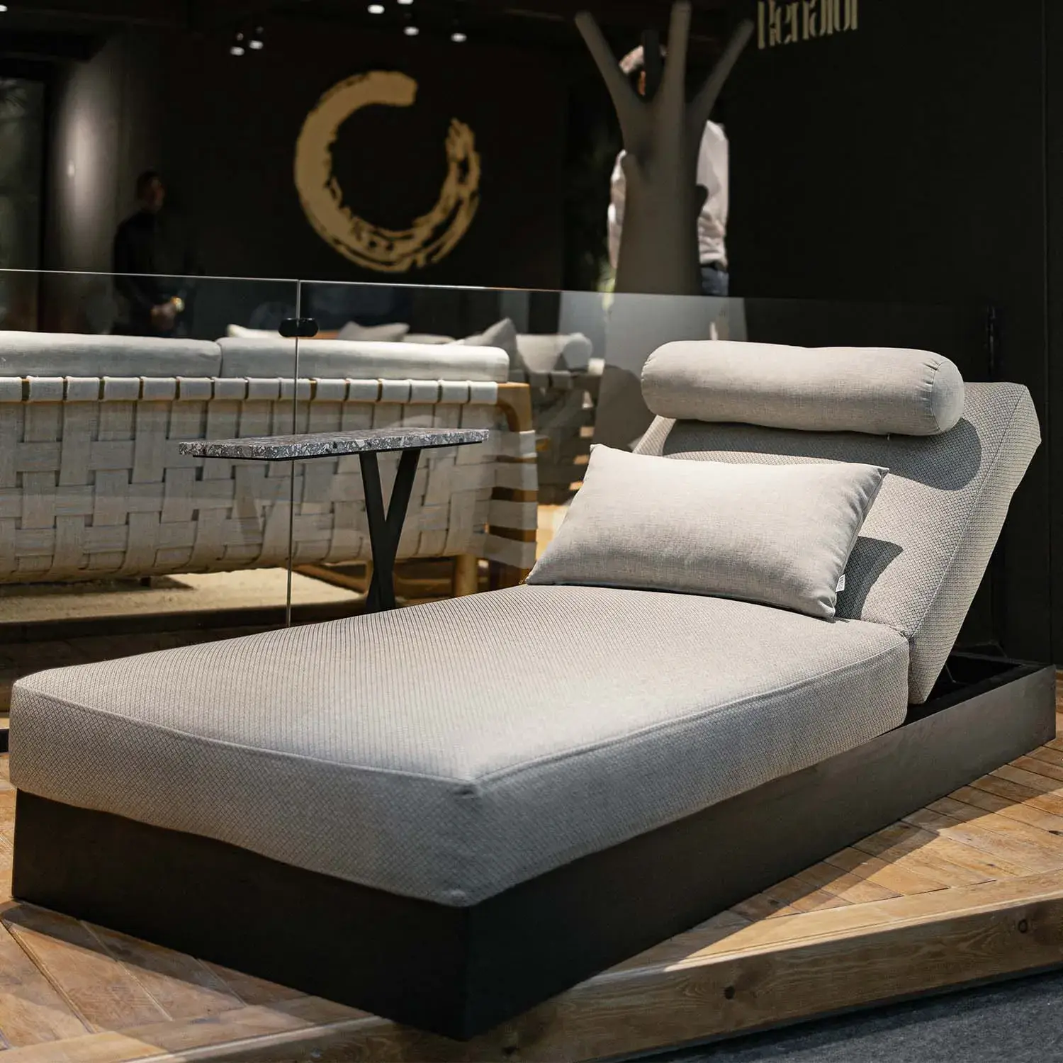 combines a sleek aluminum frame with modern comfort, designed for long hours of outdoor relaxation. Perfect for poolside, terraces, or gardens.