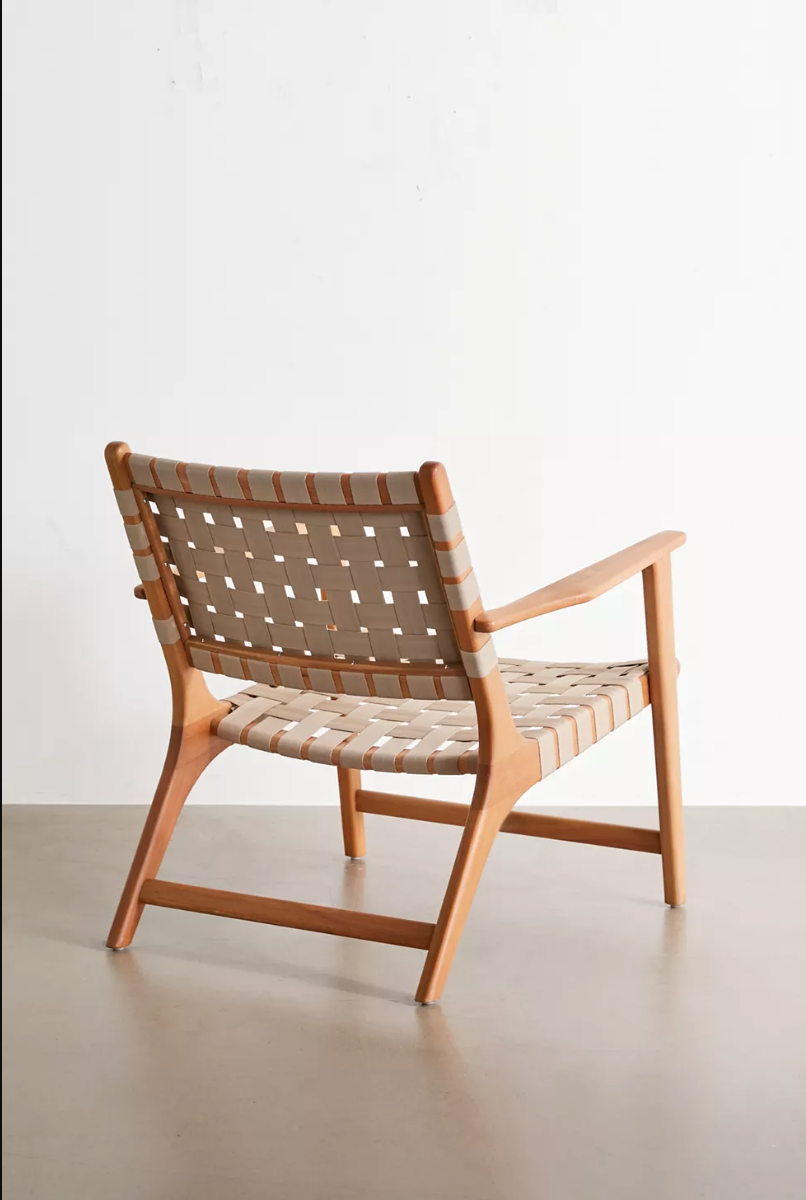 Wood and Seat: Crafted from bleached German beech with a seat woven from cotton-linen belts.