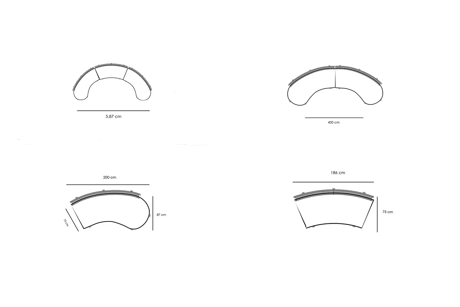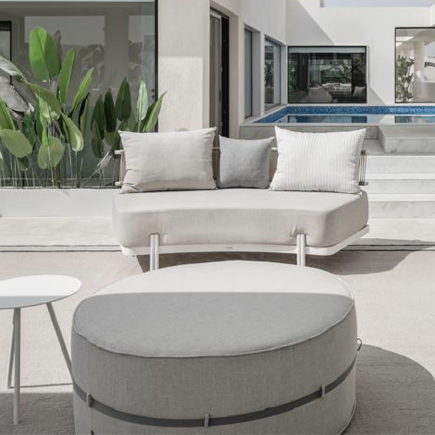 Ancona is curved modular sofa with rope details and sleek aluminum frame, designed to adapt to your space
