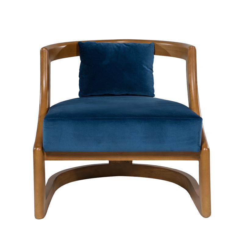 (Semi) Upholstered armchair with a curved wooden base