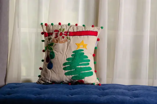 Artisanal Splendor: Hand-Embroidered Tree Cushion