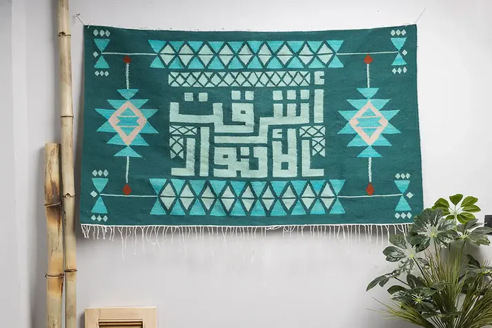 Sometimes you want to express your gratitude for someone's special visit to you. By combining this well-known Arabic greeting "Ashrakat Al-Anwar" with genuine kilim designs, you convey warmth and welcome.