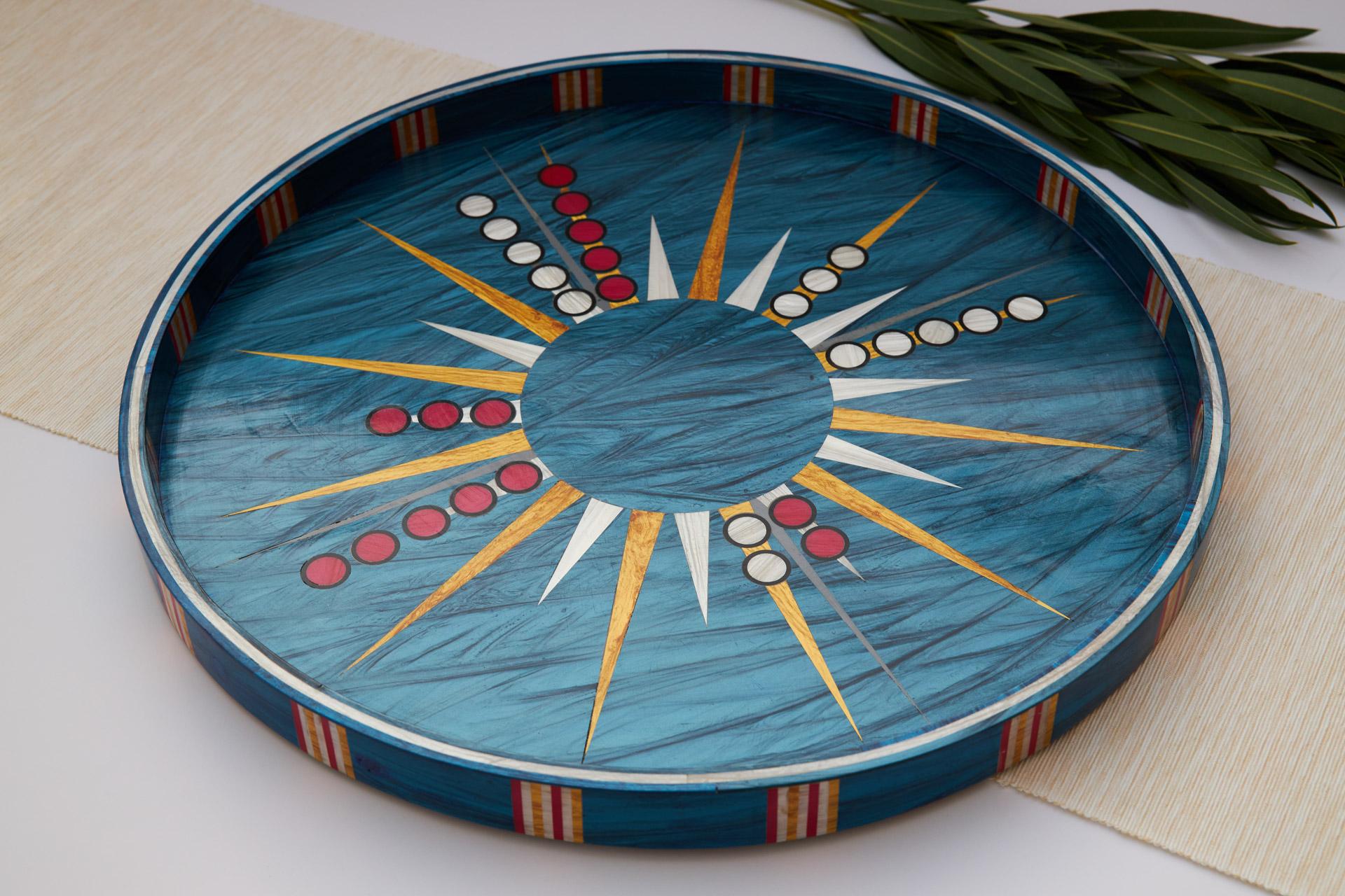 Highest quality of wood with glossy finish inlaid with mixture of mother of pearl and acrylic Measurement : 45 Color : Blue