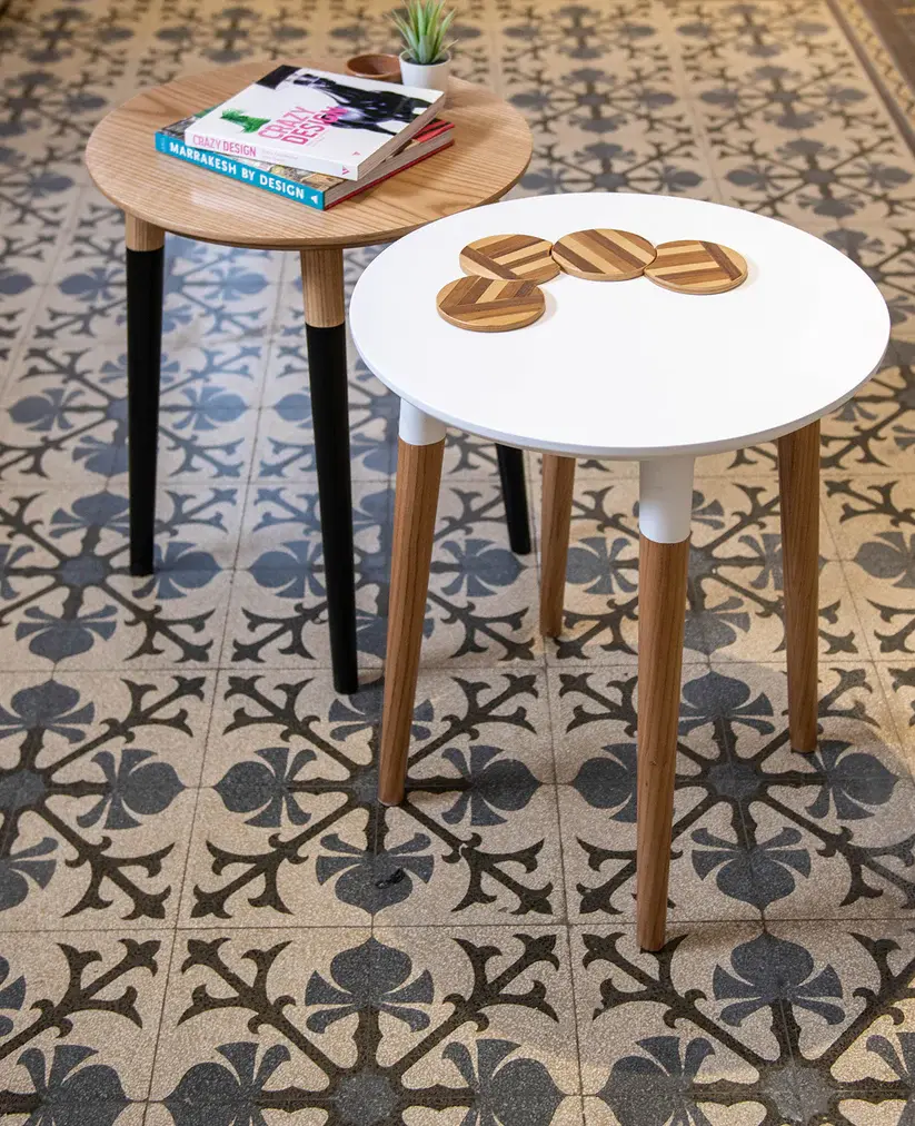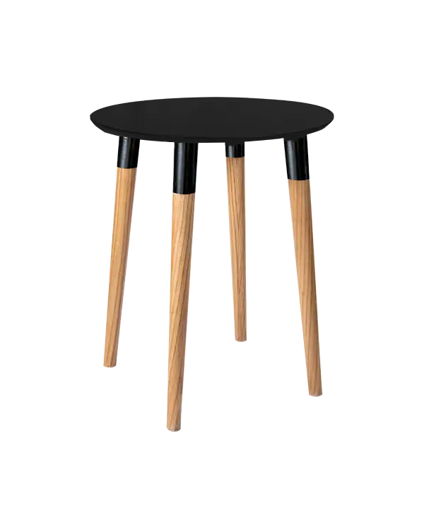 Basic Side Table changes the atmosphere of the environment with its natural appearance. It activates our sense of touch with its natural beauty. The Basic Side Table combines the natural beauty of wood with a modern look characterized by a colored top. Its simple yet catchy design adds a lot to your corner. Its texture is smooth and silky matte. Material: Wooden structure with round black lacquered top and Oak veneer legs.
