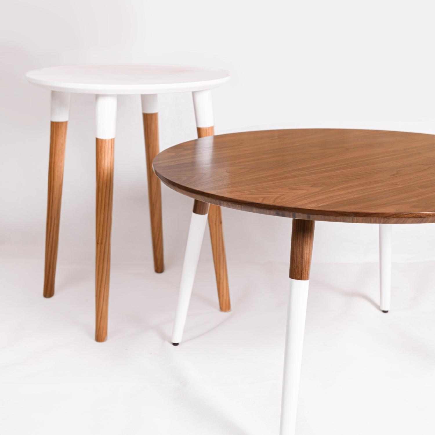 Material: Wooden structure with round white lacquered legs and Walnut veneer top.