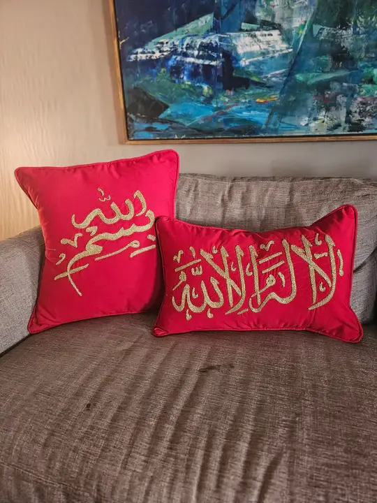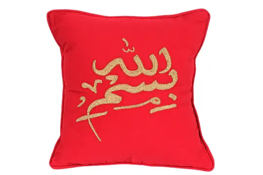 "Bismillah" - Hand-Embroidered Cushion with Arabic Calligraphy