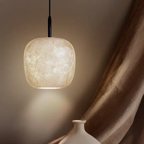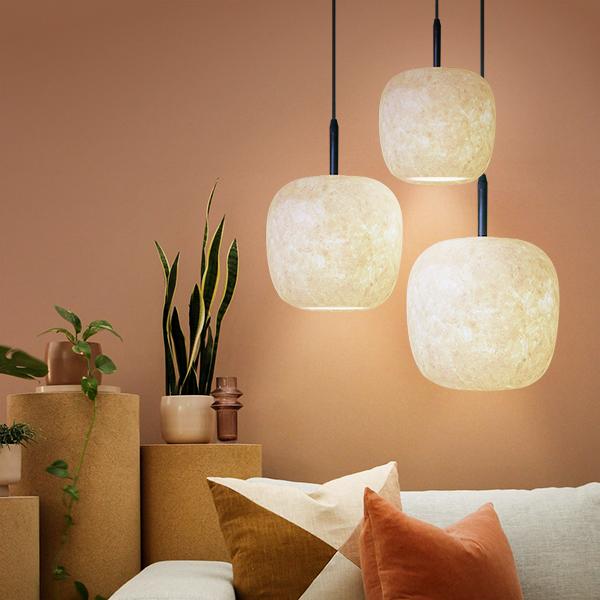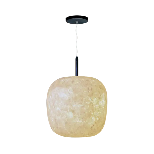For all dreamers around the world, this pendant lighting is made just for you! Inspired from the moon to light up your room and create a magical romantic atmosphere. The Moon Alabaster ceiling lighting is made to create a dramatic mode through its translucent lighting. Attached to a black metal ceiling plate ( 12cm diameter x 2cm thickness), and (1m) length silver metal wire. With LED lamp. This is a handmade product using traditional handcrafting techniques and skills, made of Soft Alabaster base connected with transparent wire. Material: Soft Alabaster & Black metal Alabaster is an Ancient Egyptian fine-grained stone that has been used for centuries for carvings, and other ornaments. It normally is snow-white and translucent. Dimensions: 30×30 cm