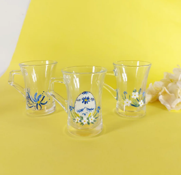 Blue Easter Egg Tea Cups With Handles Set of Six