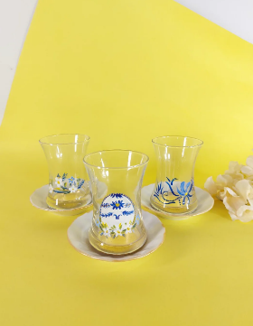 Blue Easter Egg Tea Cups With Saucers Set of Six