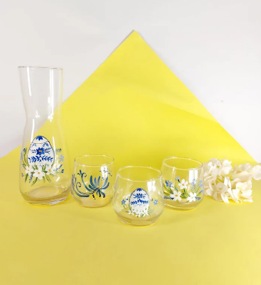 Blue Easter Egg Water Cups Set of Six with Bottle