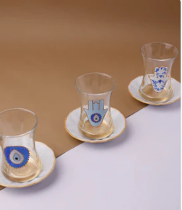 Blue Fatima Hands & Eyes Tea Cups With Saucers Set of Six