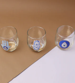 Blue Fatima Hands & Eyes Water Cups Set of Six