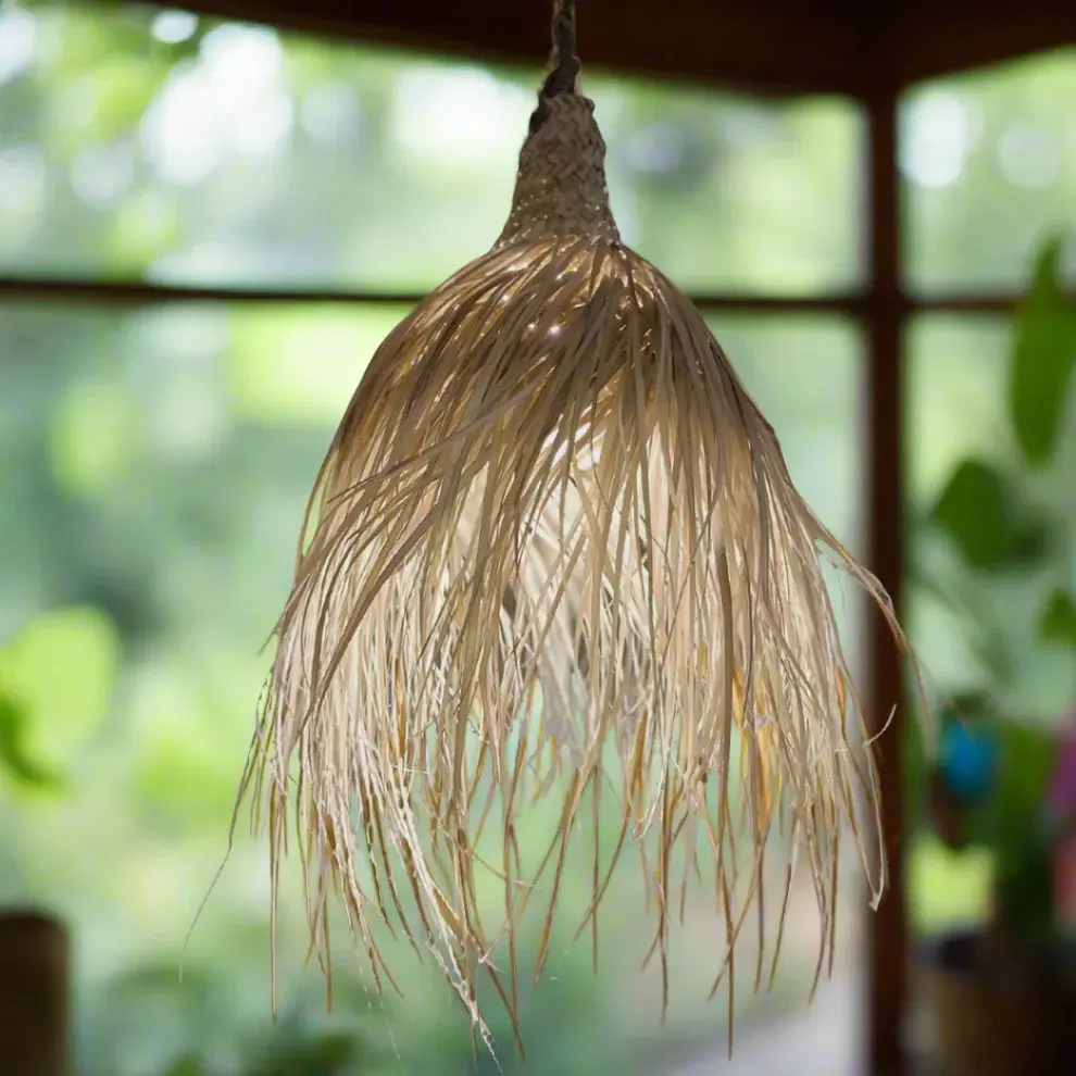 Discover the charm of natural simplicity with our Boho Pendant Light, meticulously handcrafted from the finest palm leaves. This unique lighting solution not only illuminates your space but also infuses it with a warm, rustic elegance.