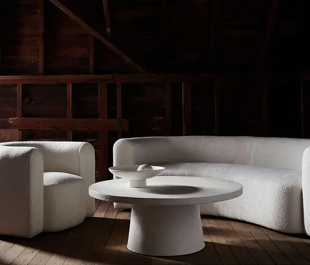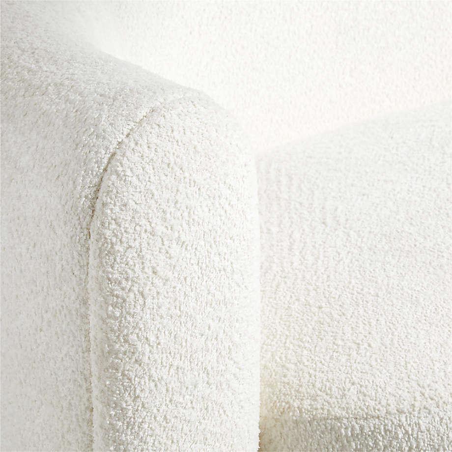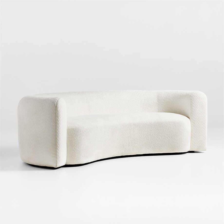Boucle's sheltering silhouette flows seamlessly from arm to back to create a nook for nestling. Striking for its sculptural curves, the sofa offers a tight seat that strikes a comfortable balance between formal and lounge-y. Ours exclusively, the modern statement sofa raises slightly on inset beyond the shadow line for a floating effect. The bouclé upholstery adds irresistible texture and a fun, casual vibe.