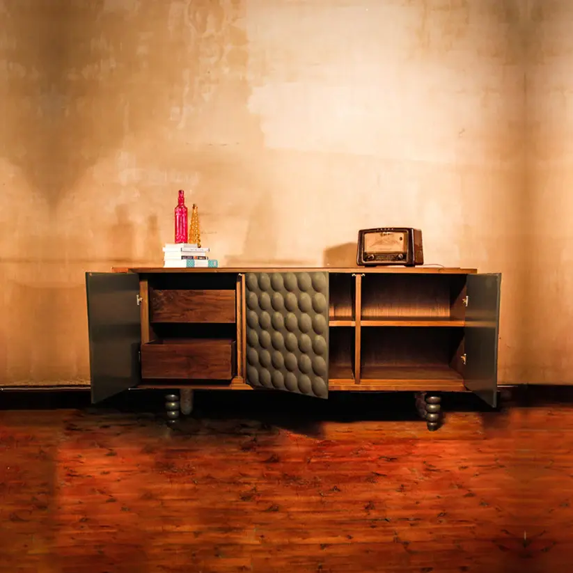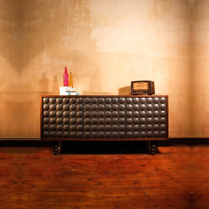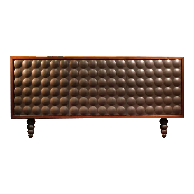 The Bubble sideboard was inspired by the bubble shapes of the CNC machine technique; it has a wooden structure in walnut veneer with 3 doors with push effect for opening and in lacquered paint. The legs are carved in lacquered, suitable for Dining Room and Reception.