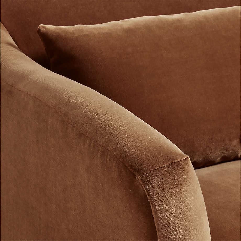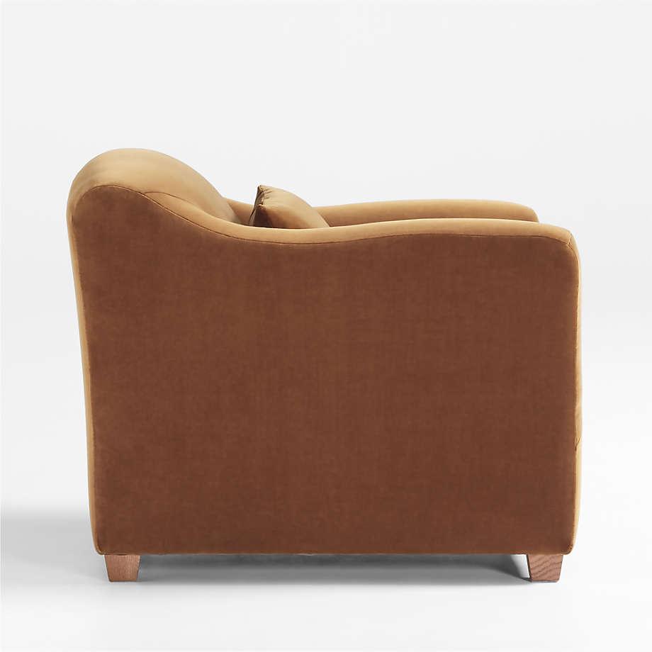 Luxe velvet brings plush texture and soft highlights to the elegant curves of Camila chair. Subtly flared arms, a low, gently rounded back and broad tight seat contribute to the chair's sophisticated proportions. Designed just a tad formal to coordinate with a wide range of styles, the velvet accent chair is the perfect place to curl up.