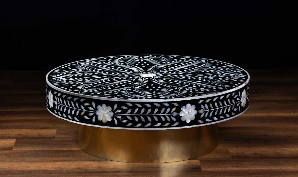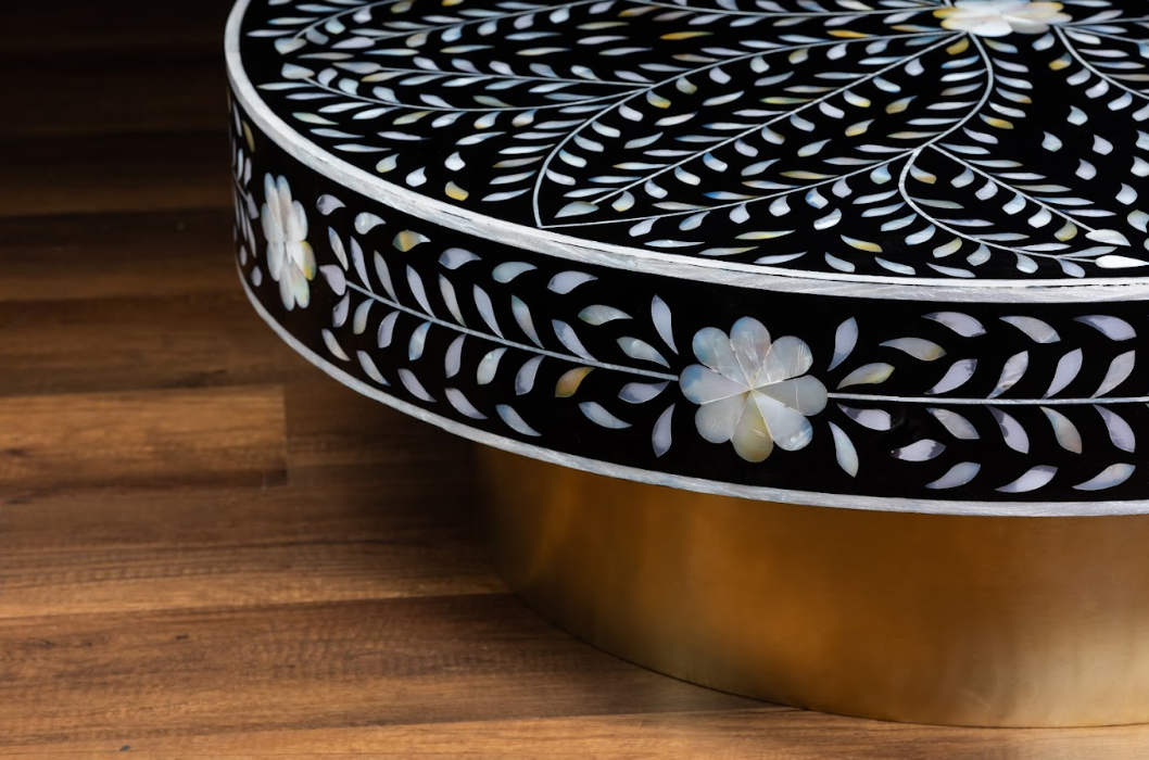 1mD*33HBlack and white mother of pearl inlay withgolden metal base.