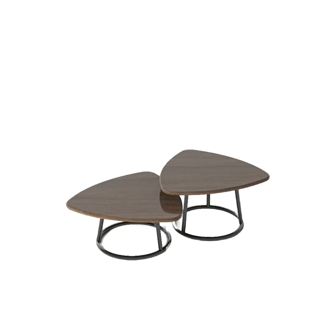 Cavex has an interesting combination of two irregular shaped tops having different heights overlapping with each other. The textured surface, which is enriched with an interesting wooden grains rests on black rounded steel base..