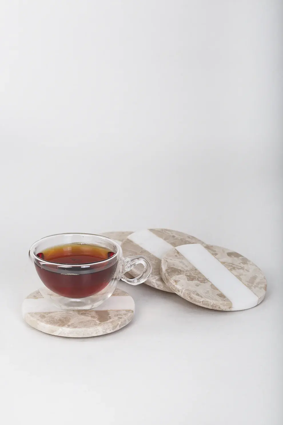 Add elegance to your table with these handcrafted, premium-quality marble coasters. they blend style and function for any home decor. Available in sets of 4 .