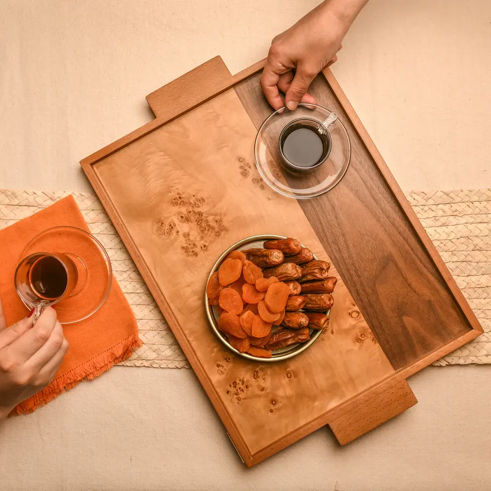 Use a soft, clean cloth, lukewarm water, and a few drops of mild dishwashing liquid to gently wipe your wooden tray clean. Once done, place where it can get sufficient air to dry