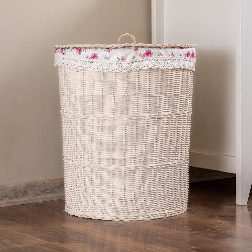 Our round natural wicker laundry baskets with a lid are beautifully handmade from bamboo wood in a rich antique white color. The lining of this laundry bin is designed with our Rosie signature print and the fabric is easily removable and washable. A perfect storage solution for your home, great for the bedroom, bathroom, or utility room.
