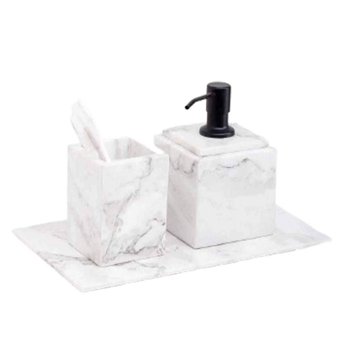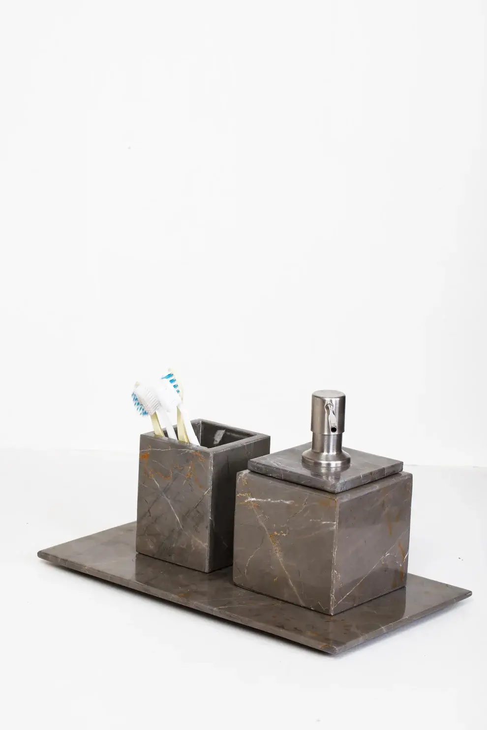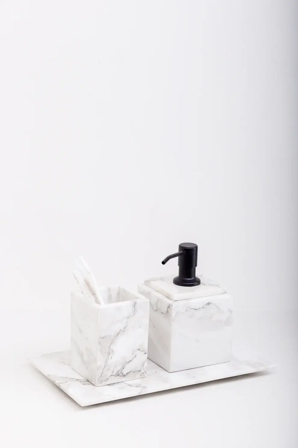 Description: A HANDMADE BATHROOM SET CONSISTING OF THREE PIECES OF THE FINEST TURKISH MARBLE, DESIGNED TO COMBINE LUXURY AND MULTIPLE USES 1-Small Tray