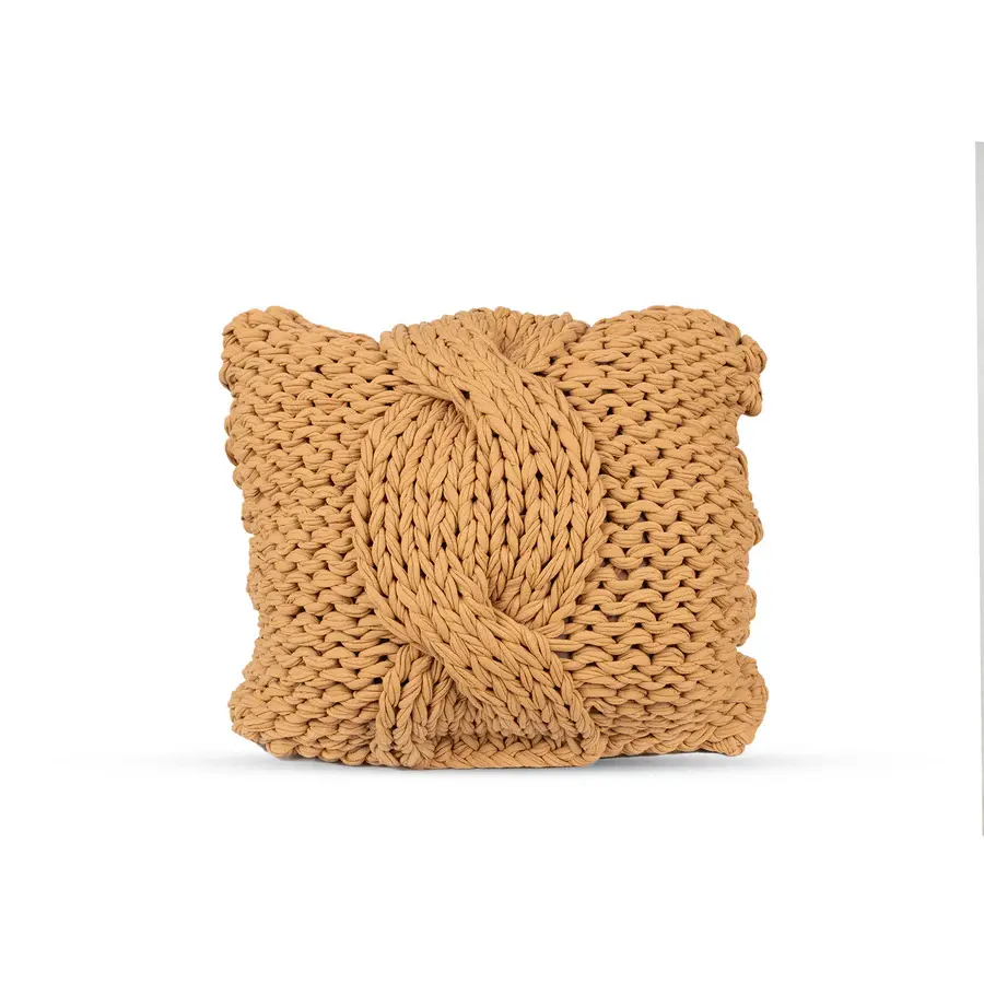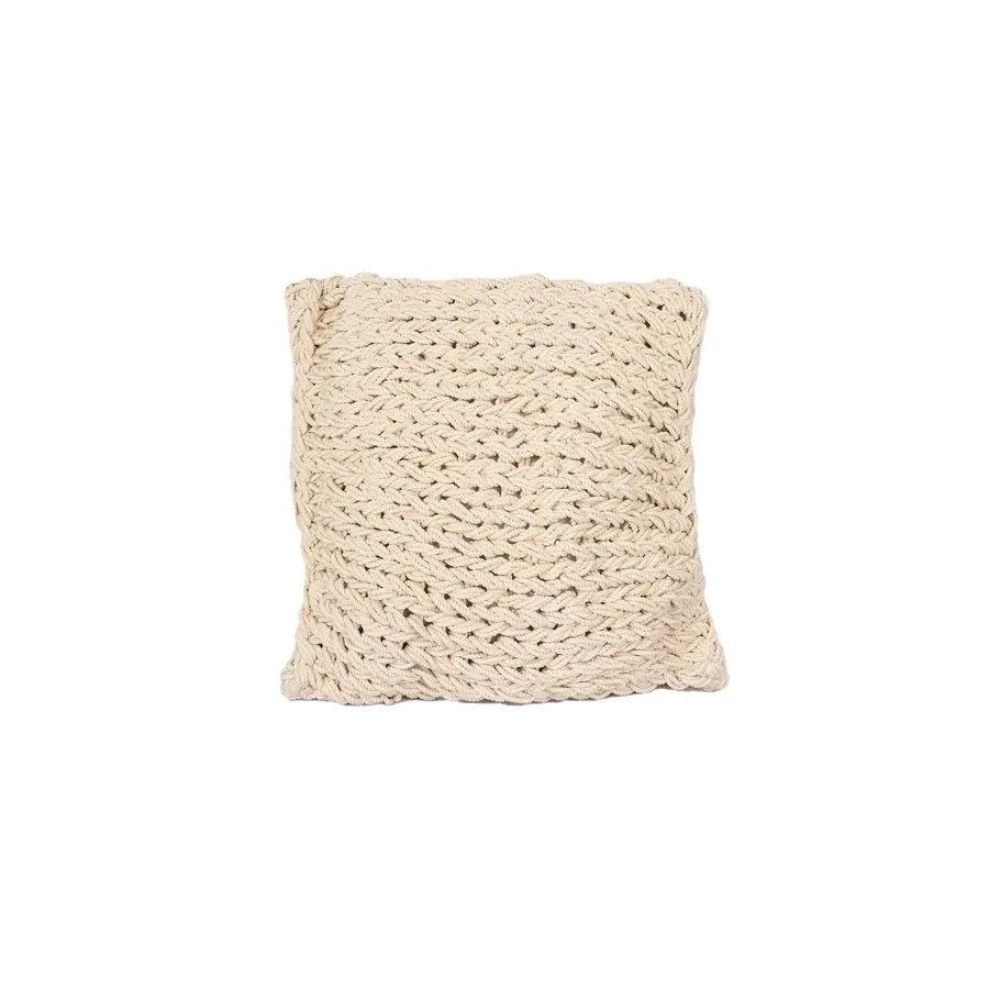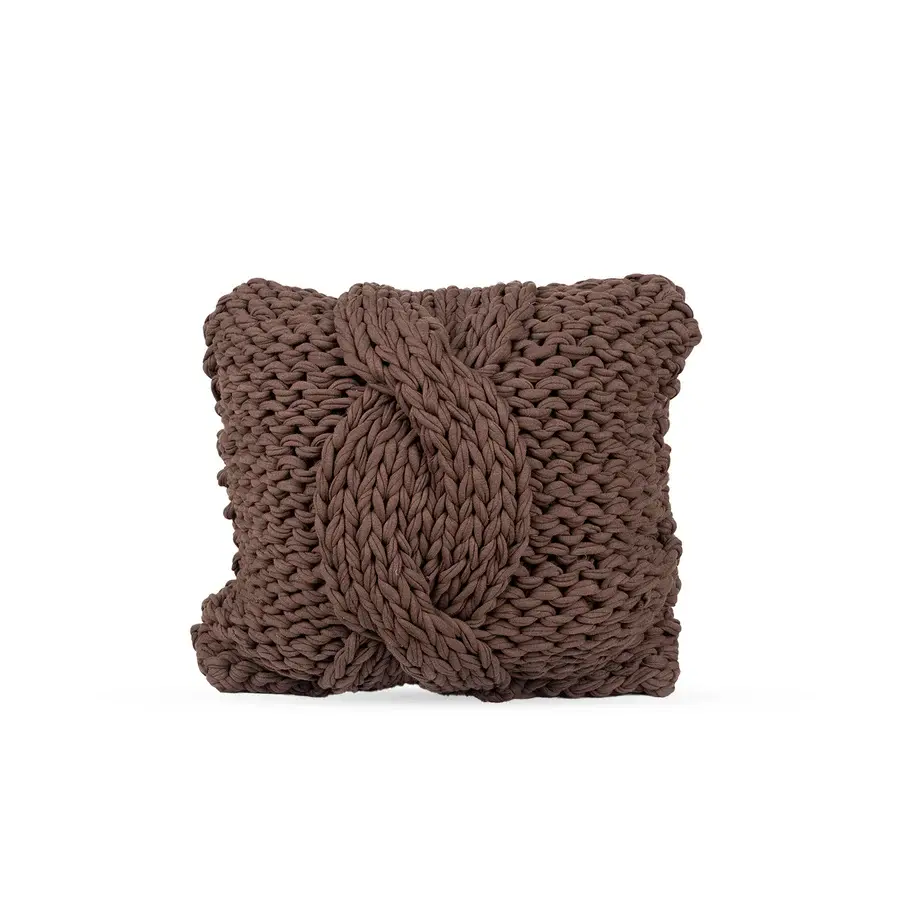 This knitted pillow with a rope design is the perfect addition to your home decor. Its soft and comfortable texture will make you want to snuggle up and relax. Get ready to add a touch of warmth and style to your living space with the CozyKnot Pillow!