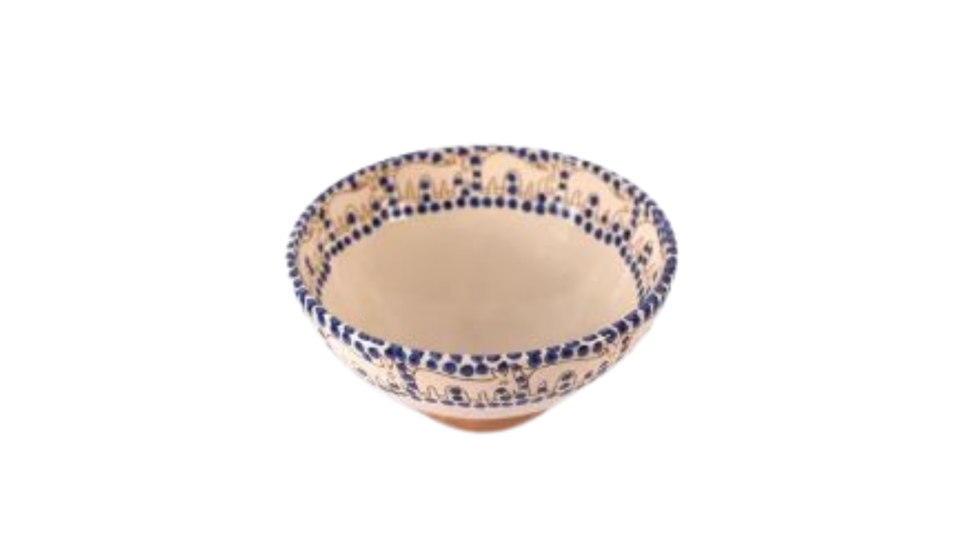 Dense with Bougainvillea blossoms, palm trees and domed adobe rooftops, Tunis is a picturesque village that sits between Lake Qaroun and the desert dunes of the Fayoum Oasis. In the 1980’s, Swiss ceramic artist Evelyn Porret introduced the village children to handicrafts when she founded a pottery school. Using clay from the Nile banks of Aswan, its graduates have become Tunis’s master potters who give the village and its pottery a unique aesthetic and style, adorning the pieces with primitive motifs from the flora and fauna of their surroundings; an identity that cannot be found anywhere else in the world.