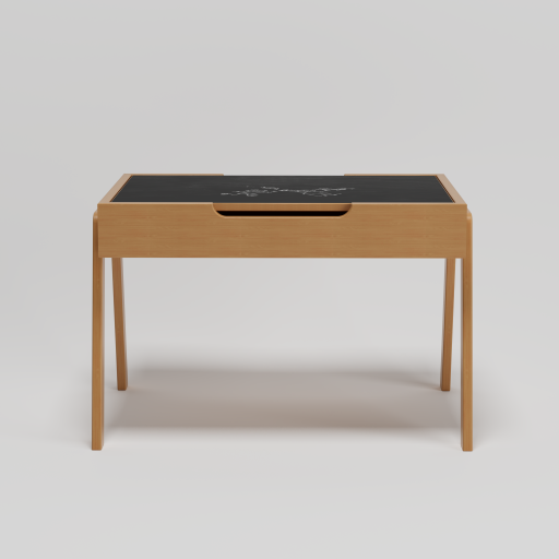 Description: This double faced table, allows the child to use the black chalk board side or the plain white side. Light and easy to switch sides and to lift slightly to reach stored items underneath.