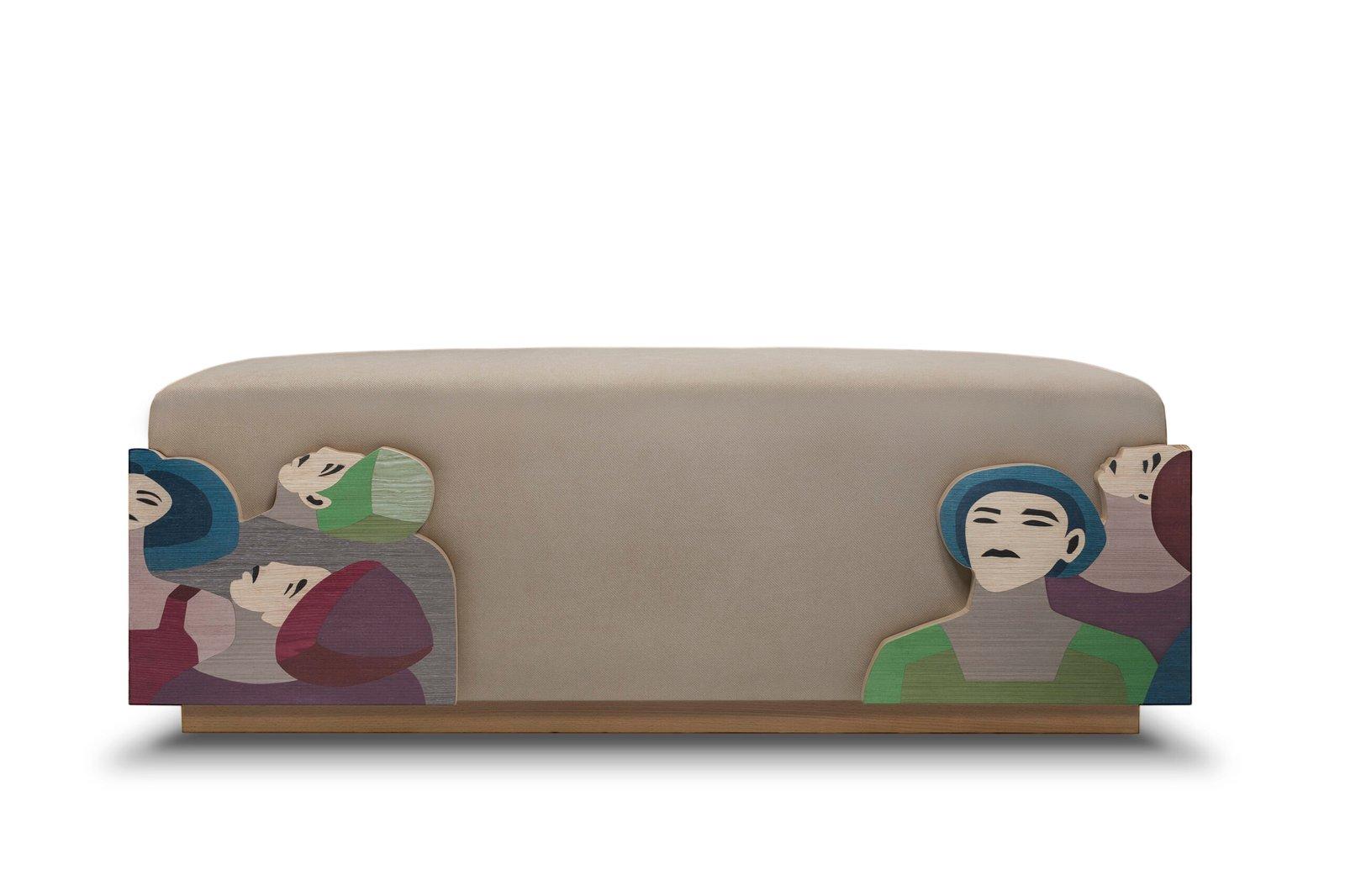 Product Type: Bench Product Code: RK57 Dimensions: 130cm width X 40cm depth X 45cm height Materials: Wood Veneers, Upholstery Delivery Time: 4 to 6 months