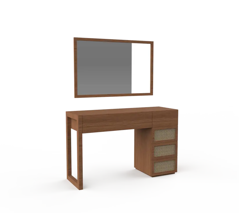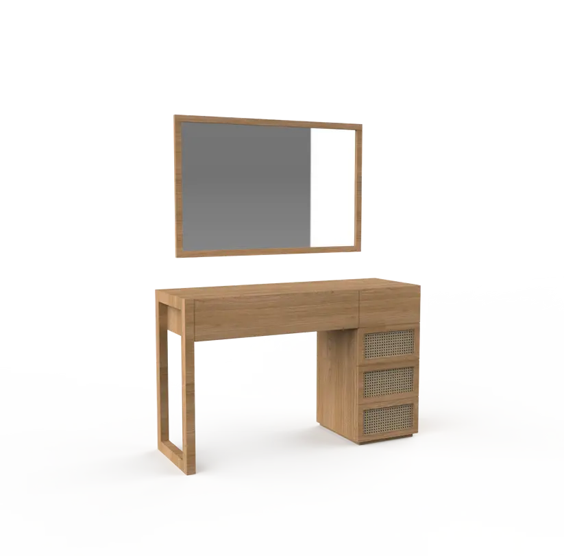 Add a touch of luxury to your daily routine with our Dune Makeup Vanity. Made with high-quality cane and wood, it comes with or without a mirror for your convenience. Transform your space and elevate your beauty rituals with this elegant and functional piece!