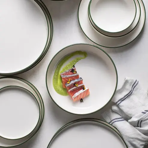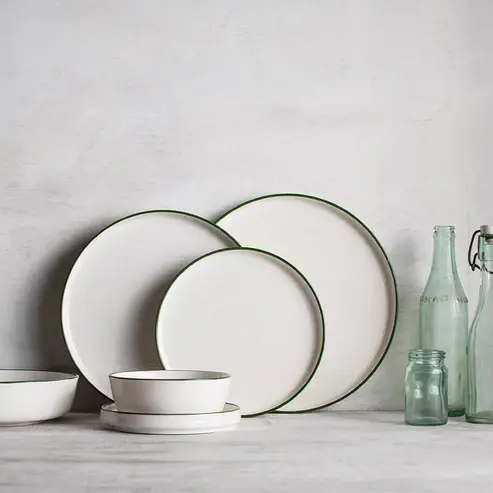Ready to thrill your loved ones with a versatile dinner set? Look no further than Ecoline 30 Plate Modern Porcelain Dinner Set - ideal for any meal, whether it's a quick breakfast or a fancy sushi dinner. Featuring a playful Nordic design with green lined rim and sturdy construction, this set will infuse your dining experience with an adventurous touch. And the best part? It's both dishwasher and microwave safe! So go ahead and add some zest to your meals with this one-of-a-kind and resilient dinnerware. Ecoline guarantees that every meal will be an unforgettable journey! adventure!