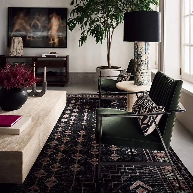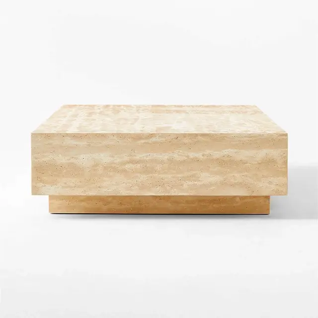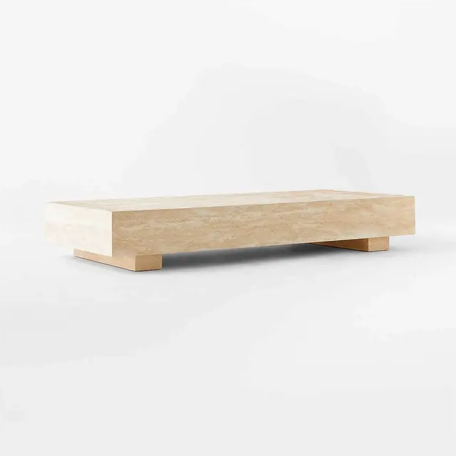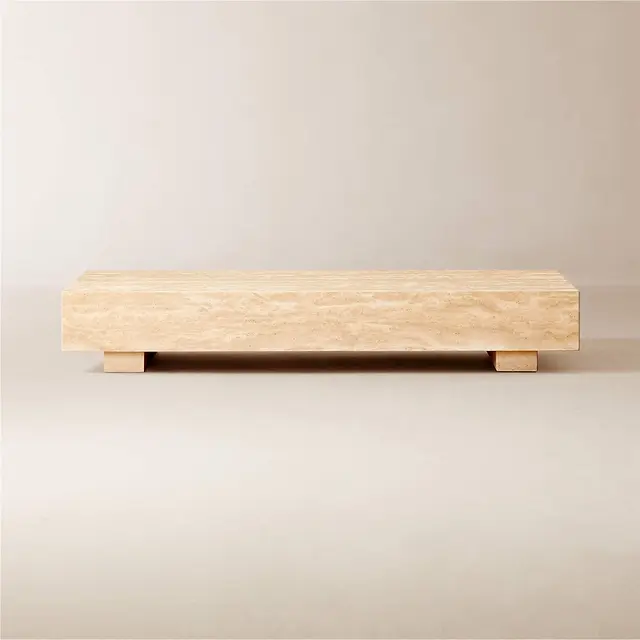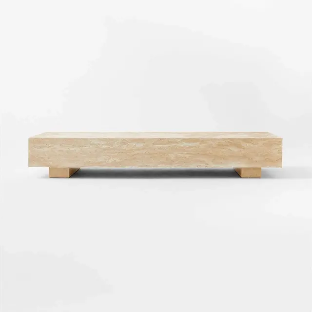 nspired by ancient post-and-lintel construction, oversized rectangular coffee table by Ceci Thomspon has a bold, architectural form. Warm natural travertine features prominent veining and varying tones. Due to the natural beauty of the stone, each piece is unique. Scaled to complement large sectionals and spacious rooms, this low table makes a graphic statement in its simplicity.