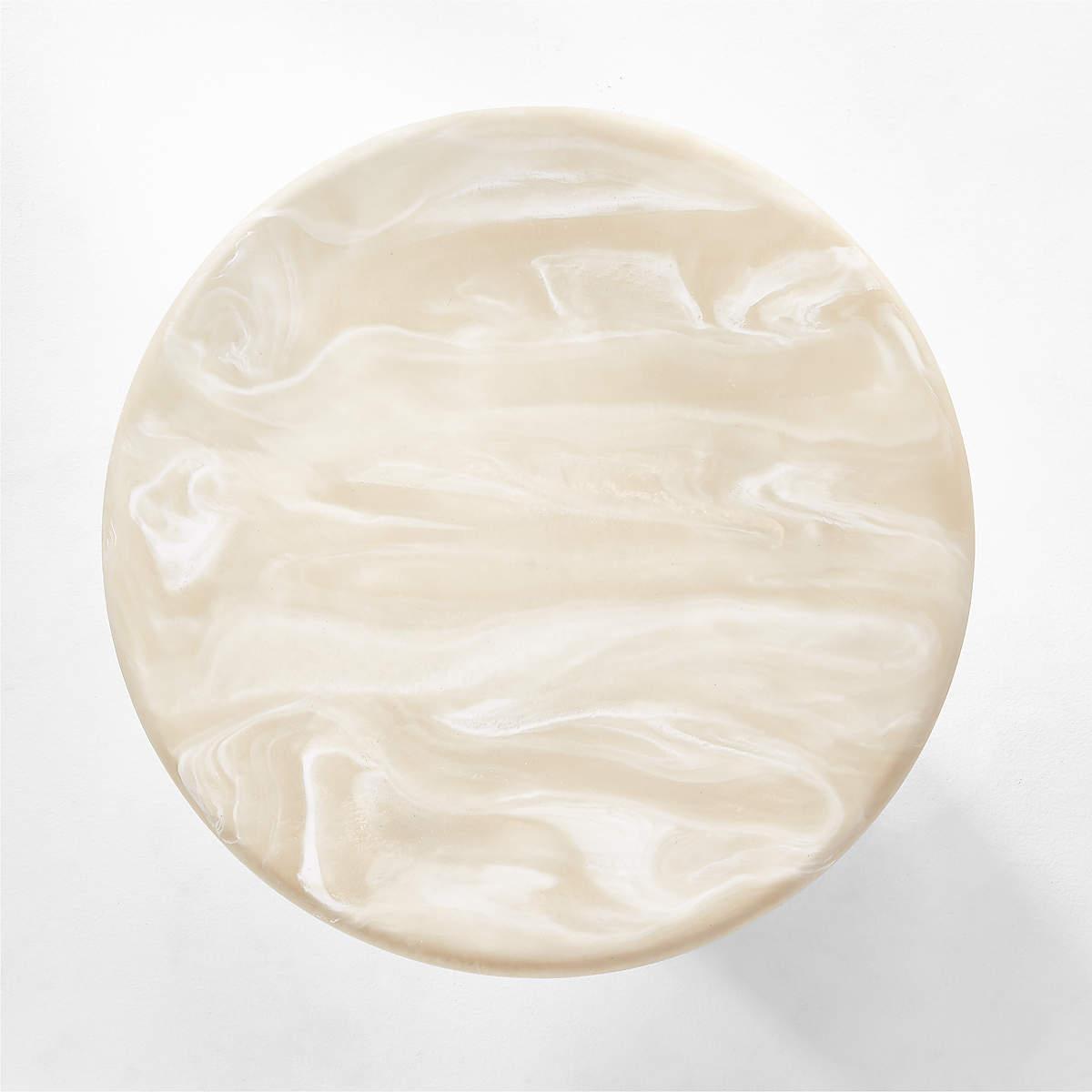 Sculptural coffee table from Brooklyn-based Caleb Zipperer updates the classic pedestal table with striking materiality and a modern biomorphic base. The organic silhouette is hand-poured and casted of matte resin with swirls of cream and ivory to resemble a richly veined marble. Perfectly scaled for smaller living spaces.