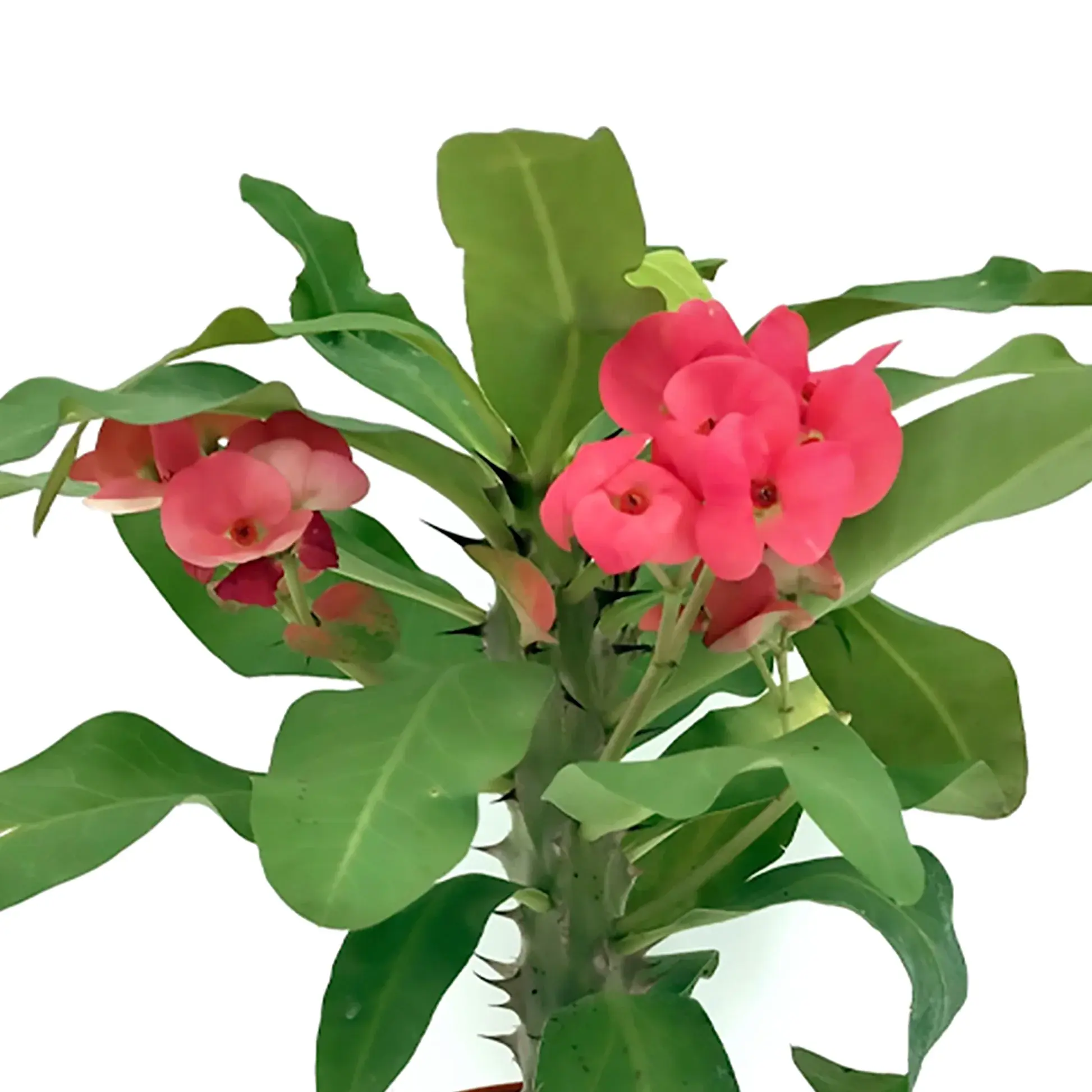 Euphorbia milii is a cactus plant that fits very well on a sunny balcony. It produces red flowers when the right light conditions are achieved.