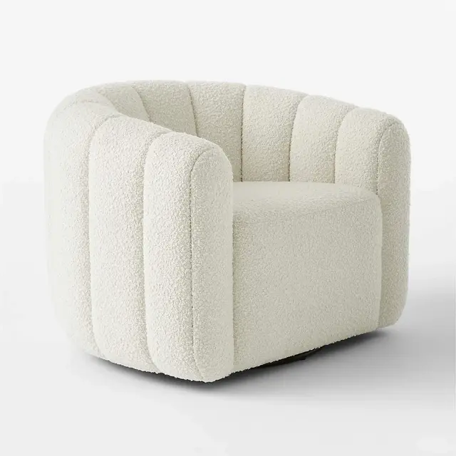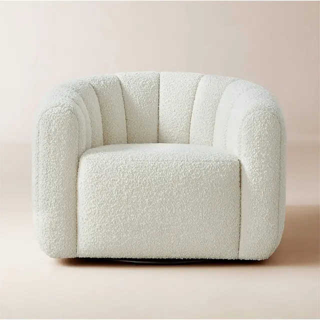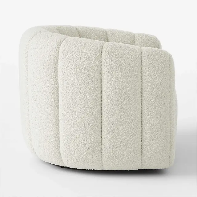 Channel-tufted in rich white boucle, this deco-inspired swivel chair makes a vintage statement wherever it sits. Designed by Andrea Sanguineti, the chair looks good from every angle.