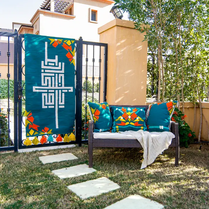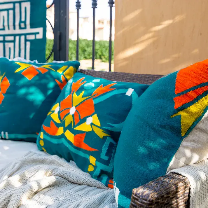 In this design, we're suggesting two products one to hang on Wall named "Ommy" and the other is a set of matching cushions with the name " Flower bucket".
