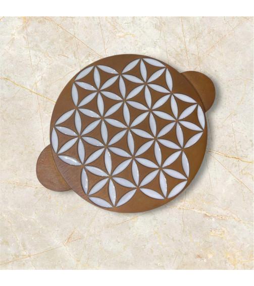 Inspired from "flower of life Pattern" engraved and filled with transparent resin with handmade small legs for more practicality
