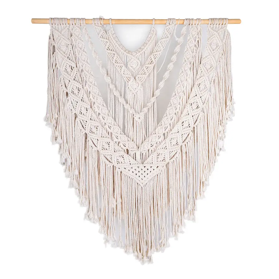 Enhance your living space with the mesmerizing FringeWave Macrame Wall Tapestry. This meticulously handcrafted wall hanging features a beautiful macrame design with flowing fringes, creating a captivating wave-like pattern..