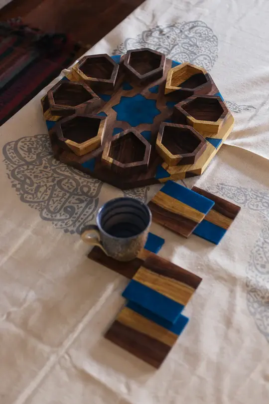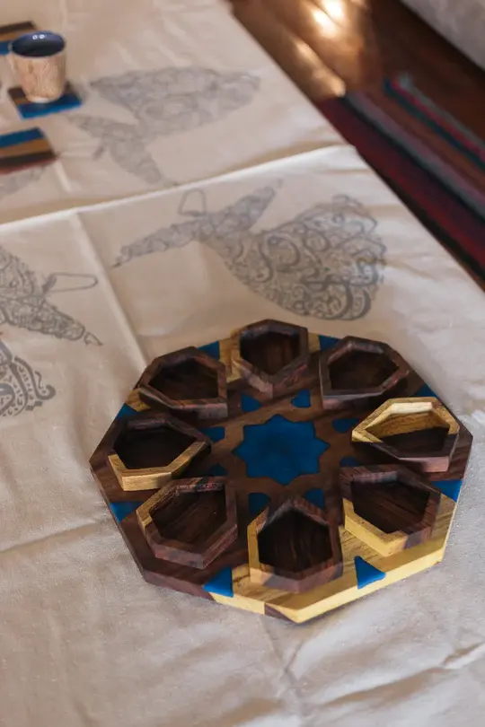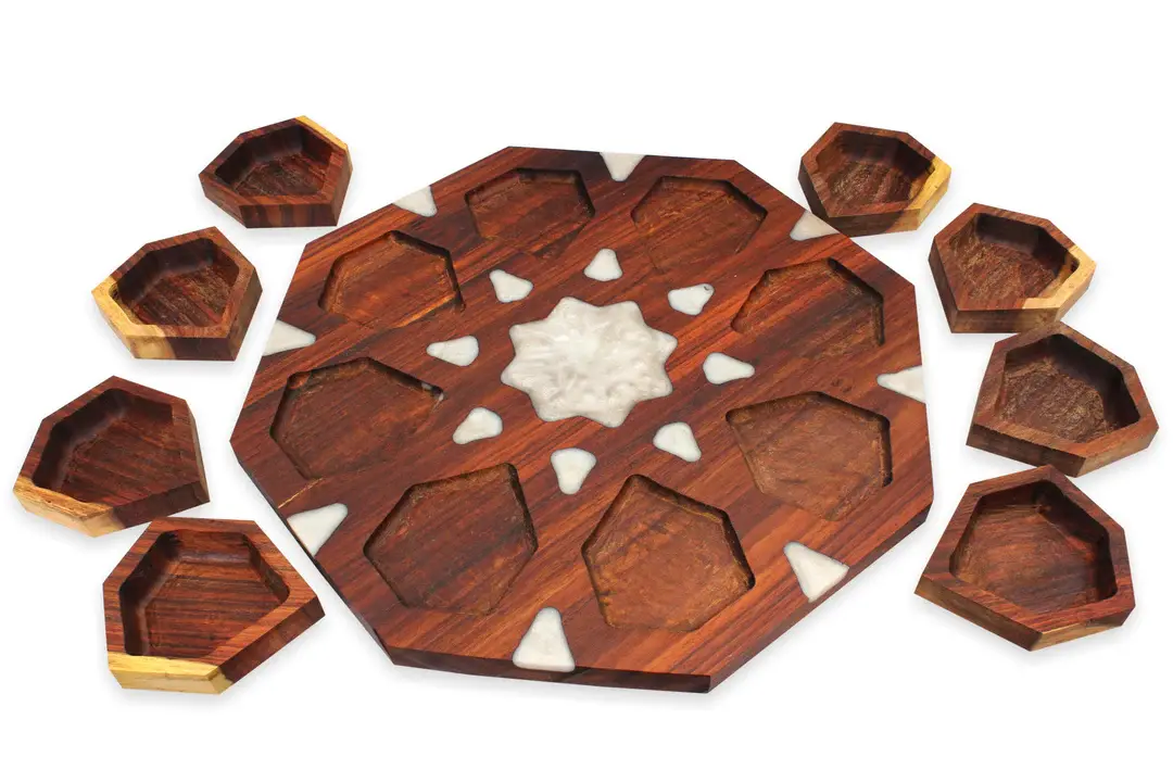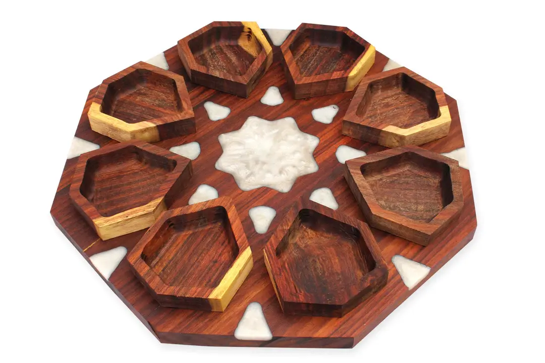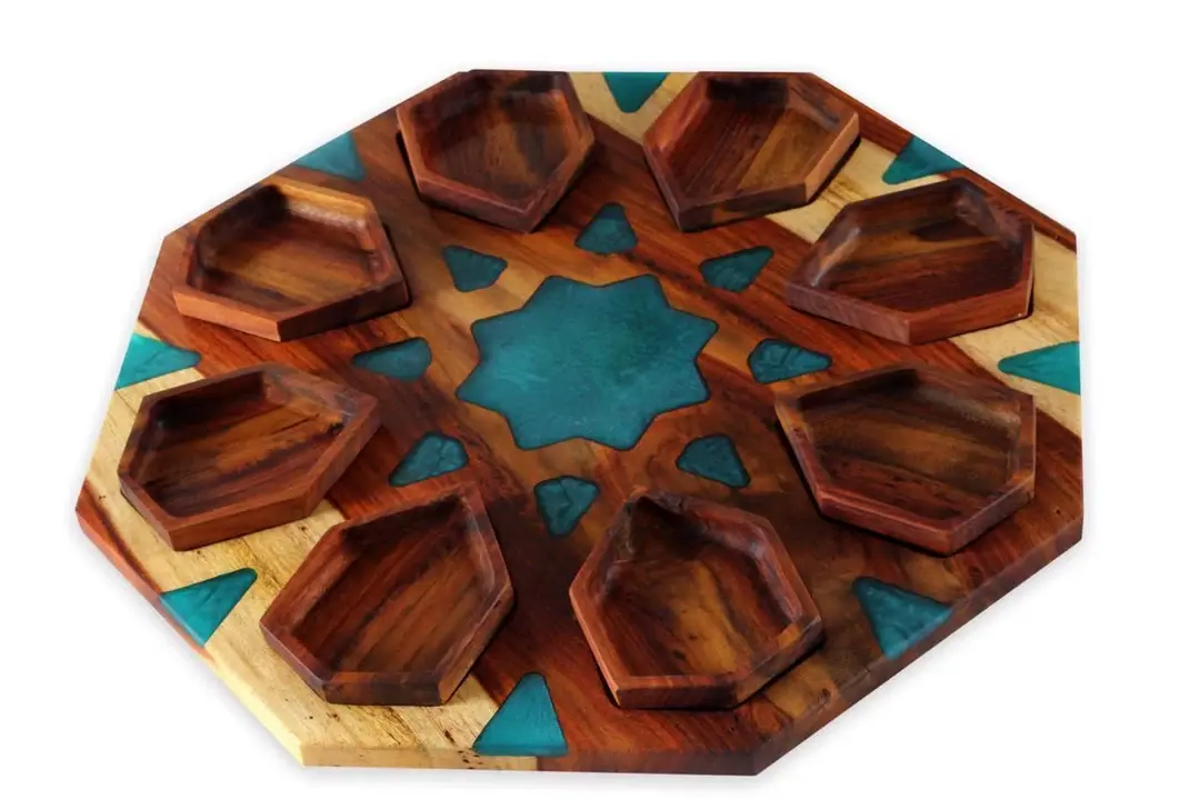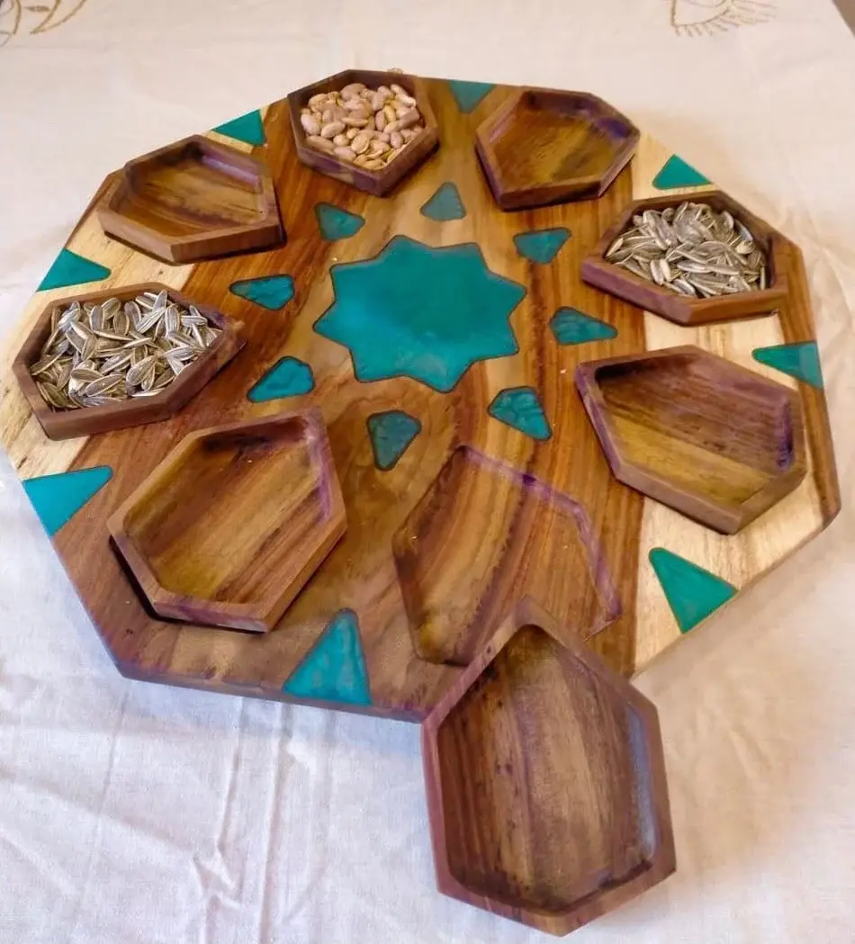 Wooden divided serving platter with epoxy