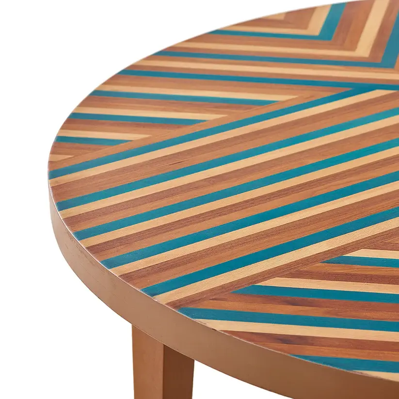 Geo Colored coffee table is beautifully handcrafted from 3 types of wooden veneers; Cherry, Walnut, Sycamore, and artificial colored one. Geo Colored coffee table changes the atmosphere of the environment with its natural appearance. It activates our sense of touch with its natural beauty. Its simple yet catchy design adds a lot to your corner. Its texture is smooth and silky matte.