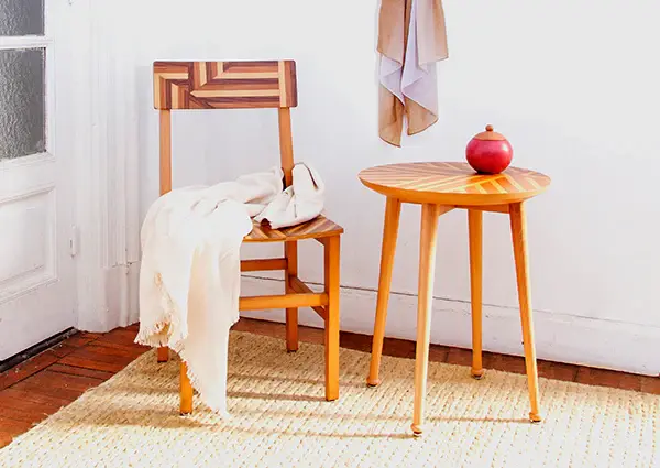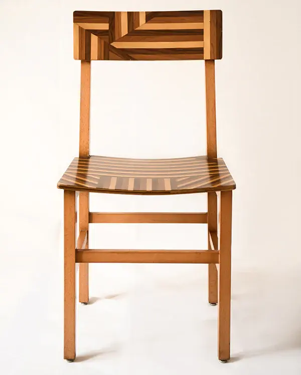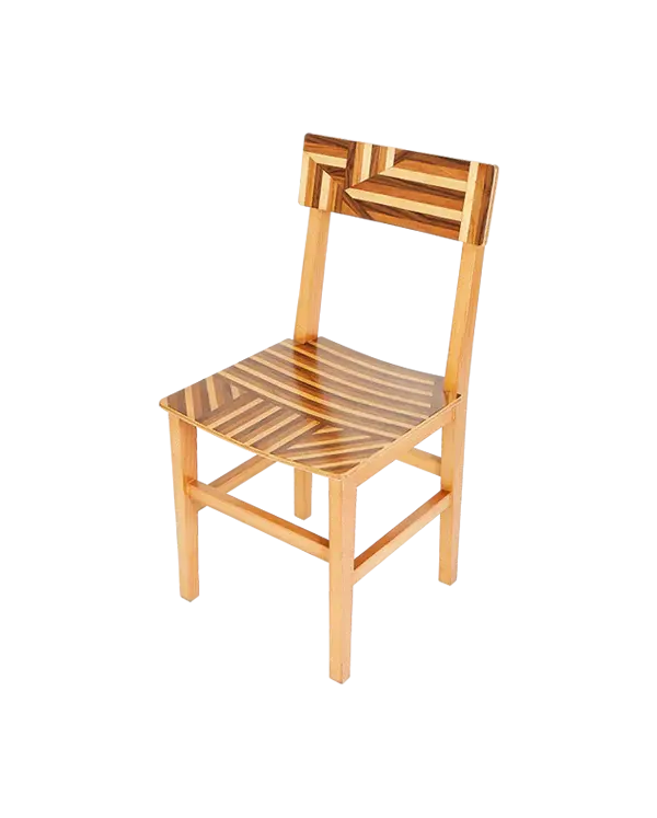 The GEO collection is an artistic and minimalist approach to a marriage of Islamic geometric drawings and the French technique – marquetry – birthing a strikingly unique piece of art. This collection aims to create an elegant & sleek design, not distracting from nature’s infinite variation, showcasing the use of real wood. Our simple, elegant Geo chair is beautifully handcrafted from 3 types of wooden veneers; Cherry, Walnut, & Sycamore. Geo chair changes the atmosphere of the environment with its natural appearance. It activates our sense of touch with its natural beauty. Its simple yet catchy design adds a lot to your corner. Its texture is smooth and silky matte. Geo chairs are beautiful and useful for dining room, gardens, cafe, restaurant, living room, balcony, desk, computer, weddings, Banquet, and party.