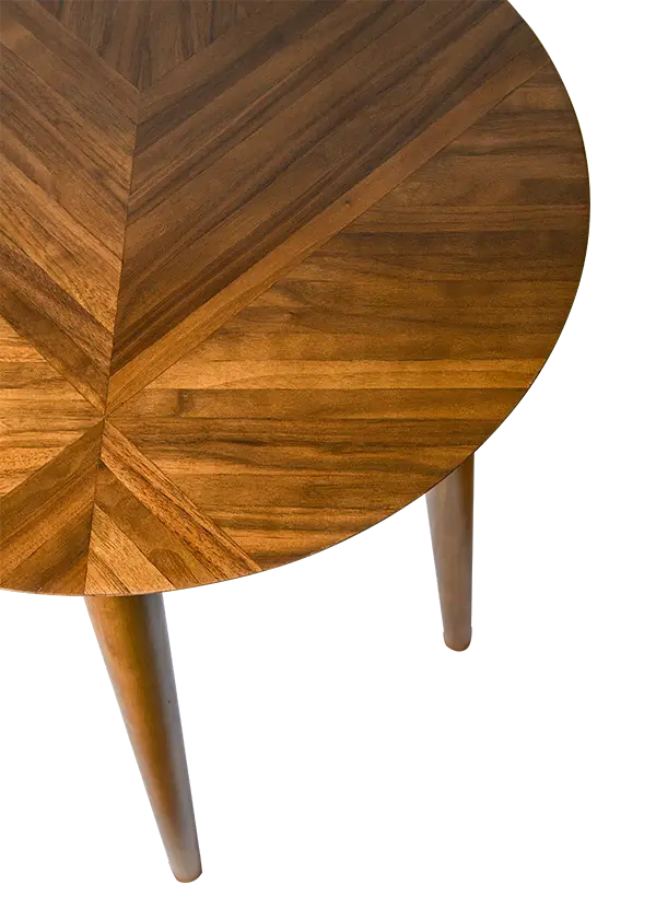 The GEO collection is an artistic and minimalist approach to a marriage of Islamic geometric drawings and the French technique – marquetry – birthing a strikingly unique piece of art. This collection aims to create an elegant & sleek design, not distracting from nature’s infinite variation, showcasing the use of real wood. Our simple, elegant Geo Light side table is beautifully handcrafted from 3 shades of Walnut veneer to form a geometric pattern with light contrast. Geo Light side table changes the atmosphere of the environment with its natural appearance. It activates our sense of touch with its natural beauty. Its simple yet catchy design adds a lot to your corner. Its texture is smooth and silky matte.