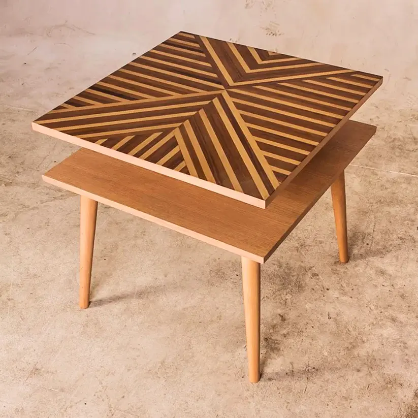 The Geo Square side table is beautifully handcrafted from 3 types of wooden veneers; Cherry, Walnut, & Sycamore.Geo Square side table changes the atmosphere of the environment with its natural appearance. It activates our sense of touch with its natural beauty. Its simple yet catchy design adds a lot to your corner. Its texture is smooth and silky matte.