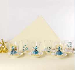 Gold Dancing Dervish Tea Cups With Saucers Set of Six