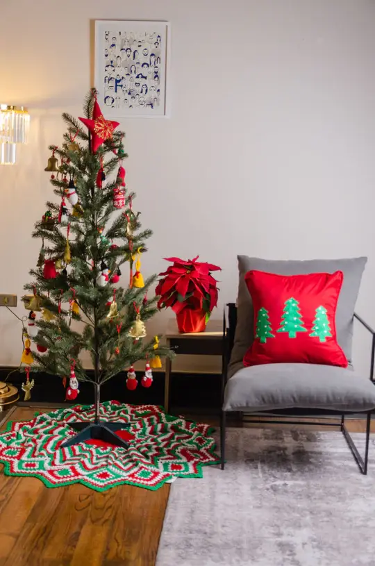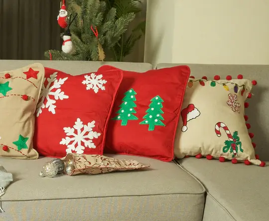 Hand-embroidered red Christmas cushion (Size: 42*42cm)