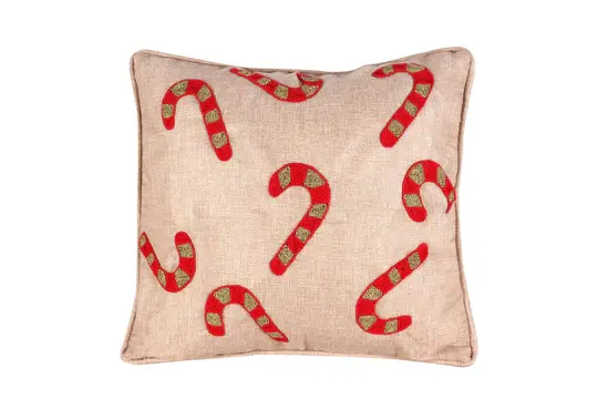Candy Cane Cheer Hand-Embroidered Cushion